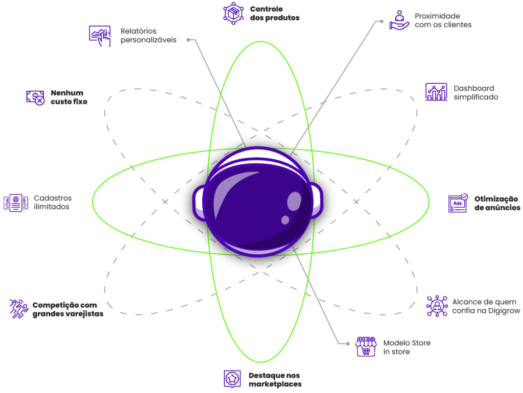 A questão de pós-venda e atendimento ao cliente, toda a parte da reclamação ou alguma dúvida que o cliente venha a ter, isso acaba que nem chega aqui para a gente; a equipe da Digigrow acaba resolvendo 99% de tudo.