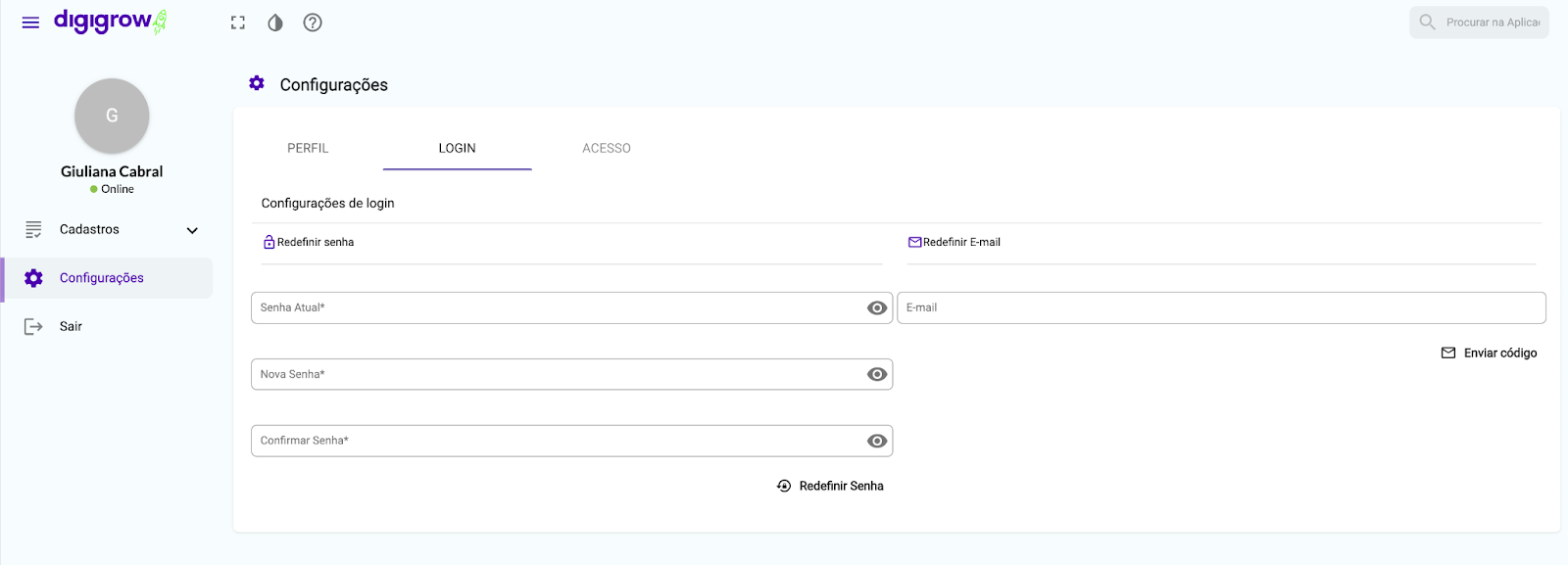 - Dentro de configurações, clique em “login”.